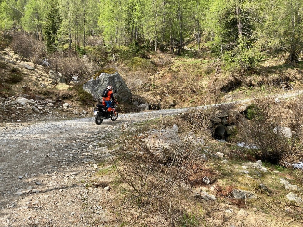 Auf Facebook bin ich in einer TET-Gruppe und hatte dort berichtet, was abläuft. Und es hat sich doch ein Motorradkollege vom Lago Maggiore gemeldet, der konkrete Vorschläge und sogar gpx-Dateien anbot. Außerdem wieß mich Lorenzo auf www.wikoloc.it hin - einer Sammlung von Tracks für alle möglichen Outdoor-Aktivitäten. Da bin ich doch tatsächlich fündig geworden und habe in der Gegend drei vielversprechende Tracks gefunden, die legal zu befahren sind. Das Ganze konnte ich zu einer Tour von ca 200 km zusammenbauen und damit stand der Plan für Freitag.