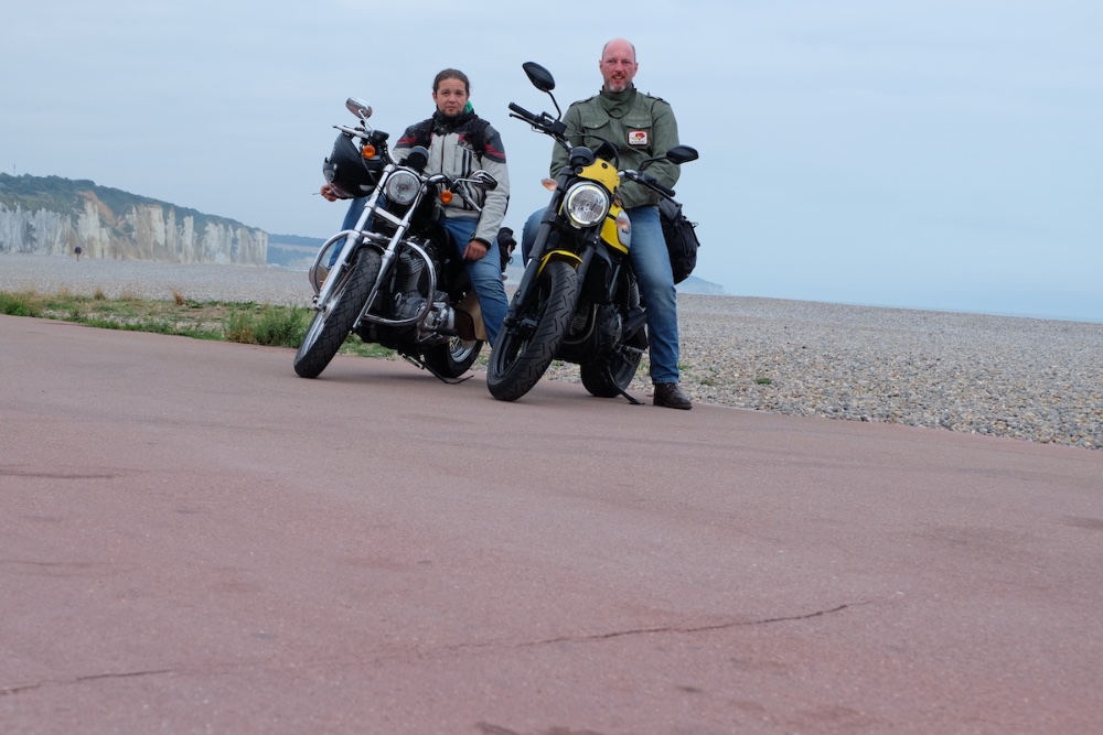 Die Strassen wurden nicht wirklich kurviger und wir sind dann bei noch recht passablem Sonnenschein weitergefahren. In Dieppe angekommen haben wir dann den Rest des ursprünglichen Plans komplett über den Haufen geworfen, weil wir irgendwie auch mal ankommen wollten. Nach dem ersten Ehekrach :Kn: :Bx: haben wir dann beschlossen einen Tag Ruhepause einzulegen und auf zwei Etappen nach Hause zu fahren. Am Ruhetag haben wir uns natürlich auch auf die Bikes geschwungen und haben an der Küste entlang die Straßen erkundet. Schöne Kurven, malerische Dörfer, phänomenales Essen und tolle Strände, also alles was das Herz begehrt.