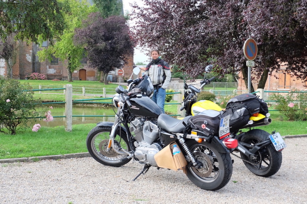 Weiter ging es an Tag 2 Richtung Dieppe. Die Dame im Navi hat sich bei der Ausfahrt aus Reims etwas schwer getan und irgendwann sind wir dann in Soisonnes gelandet. Gerade Recht für eine Kaffeepause und nen ordentlichen Regenguss. Die Bikes waren natürlich samt meiner Gepäcktasche klitschnass und ich dachte, nun wäre der optimale Zeitpunkt das Regencape für den Cargobag rauszuholen. Habe dann festgestellt, dass es gar kein Regencape gibt, sondern nur eine wasserfeste Innentasche. Dreimal dürft ihr raten wer auf der nassen Strasse seine Tasche umgepackt hat. ==> Moi :Trost: