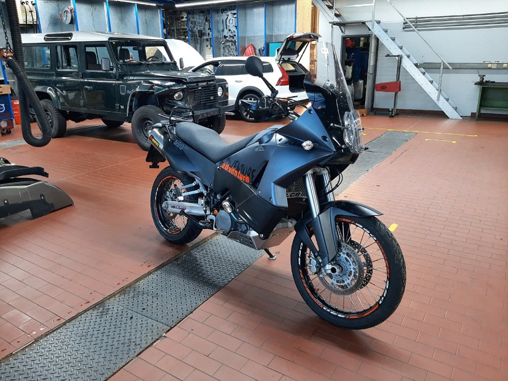 Genau in der Farbe hatte ich die 990er@ auch. Habe sie mit 102.000 km dann nach 13 Jahren verkauft, ohne je größere Probleme gehabt zu haben. Nur Kupplungsnehmerzylinder einmal getauscht bei 48.000 km und die Hinterradbremse versagte regelmäßig, weil die Bremsflüssigkeit durch den Krümmer zu warm wird. Habe dann alle 5.000 km die Bremsflüssigkeit getauscht, dann gings.