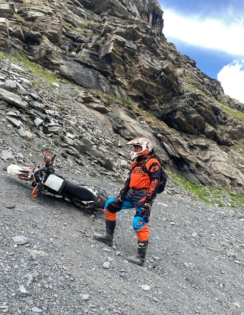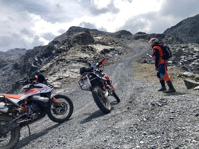 Jedenfalls lag ich schon zwei mal neben der Maschine, einmal weil zu schnell, einmal weil zu lahm. Zum Glück nichts passiert und meine Schützer und Sturzbügel haben ihre Dienste verrichtet. Vor dem nächsten Steilstück streichen wir die Segel und machen uns auf den Rückweg über die Bergstation, über die wir hochgefahren sind. Dann waren es halt nur 2980 m … nervt mich bloss nicht !!! :Bx: