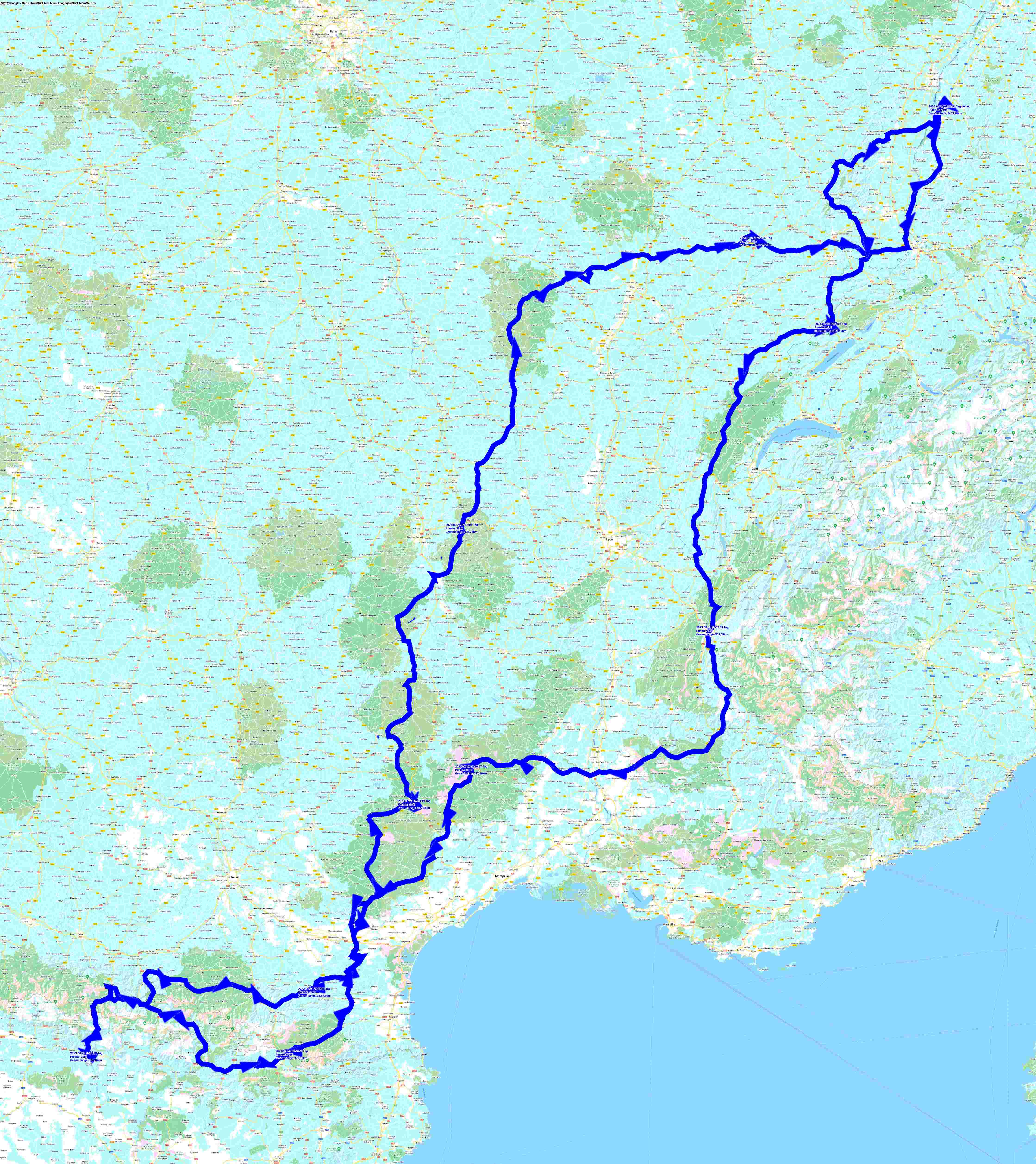 Zurück gings über eine andere Route, trotzdem schön und nach dem weiteren Genuß tiefgekühlter, französischer Kochkunst waren wir dann wieder wohlbehalten daheim.