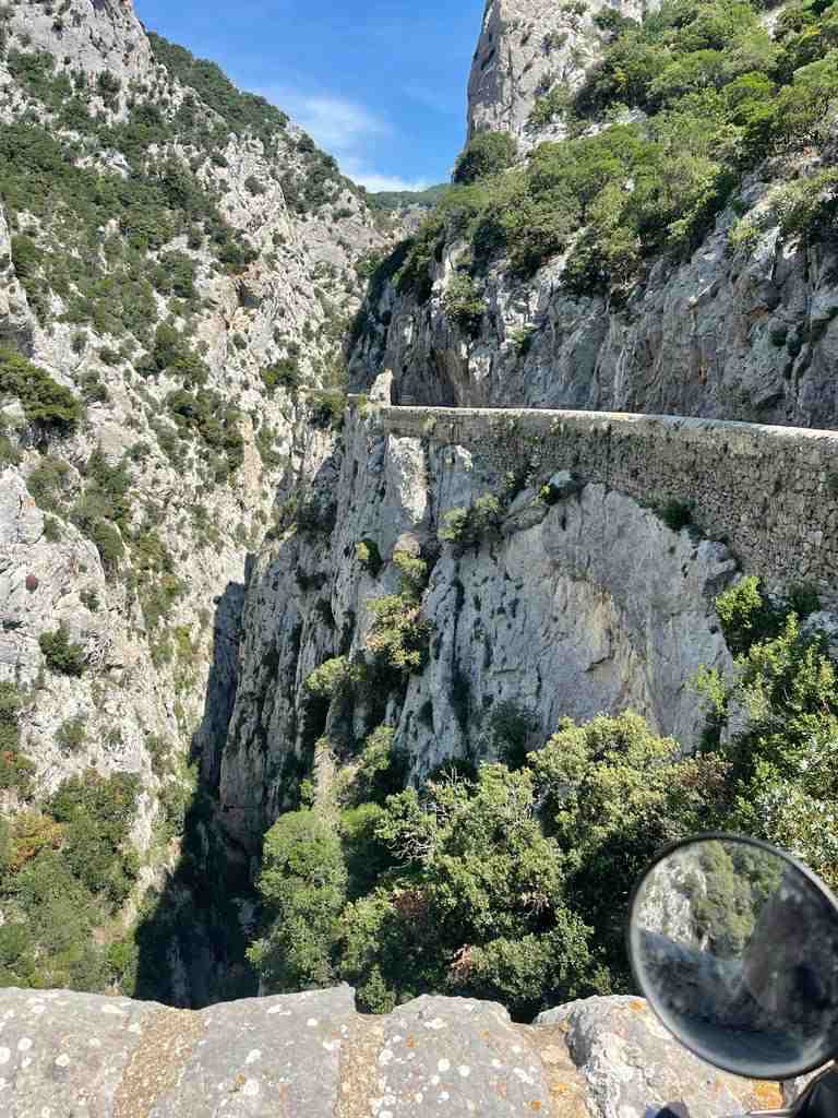 Die Cevennen sind fahrtechnisch ein ausgesprochenes Spaßrevier. Kurven aller Radien ohne Ende. Nur der immer wieder aufgeworfene Split trübt den Spaß manchmal. Und wenn Du Pech hast, ist die Reise auch ganz schnell zu Ende…