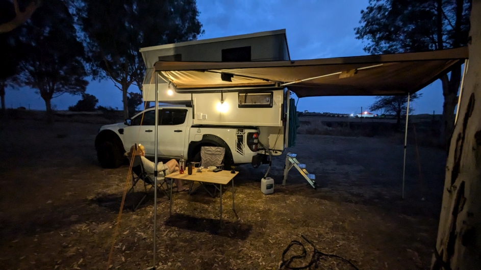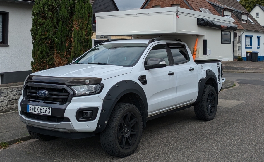 Ich möchte Euch mal unser aktuelles Reisemobil vorstellen, einen Ford Ranger Wildtrak mit einer Wohnkabine. Der Grundriss, die Maße, die Anordnung der Staufächer, die Größe und Anordnung der Fenster, die Dachluke, die Solaranlage, die Markise usw., entspricht exakt unseren Vorgaben an die Kabinenbauer. Sprich: Diese Kabine ist ein Einzelstück, genau zugeschnitten auf unsere Bedürfnisse, also mit Platz für zwei Personen und Hund, und um min. 3 Tage autark freistehen können.