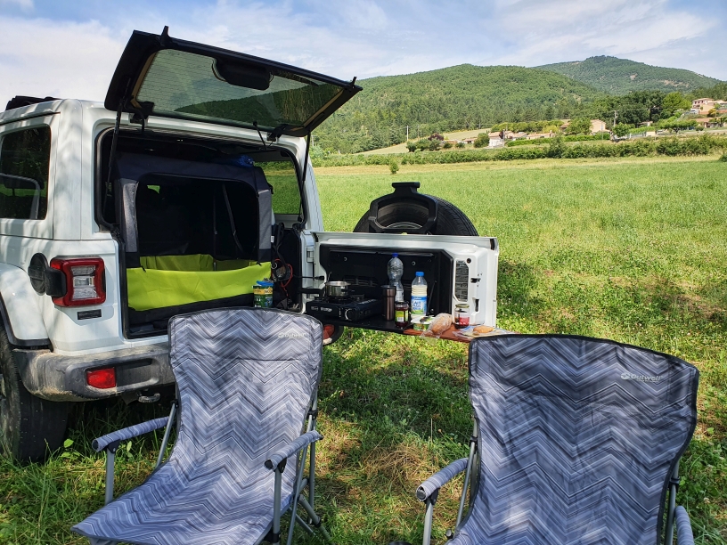 Uns gefiel das Reisen und „Offroad-Fahren“ mit dem Jeep Wrangler richtig gut. Und schon im Jeep war immer ein Tisch und Campingstühle, sowie eine Picknick-Ausrüstung an Bord.