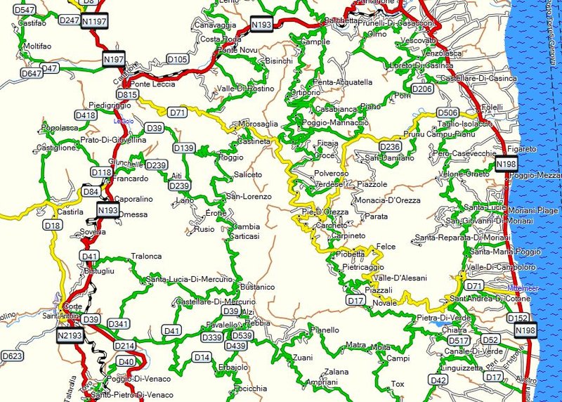 Am nächsten Tag erkunden wir die Höhenzüge der Balagne , durch die sich kleine Straßen schnell von der Küste weg zu schön gelegenen Bergdörfern wie Belgodere oder Speloncato winden. Weiter östlich finden wir den Eingang zur Asco - Schlucht, die als Sackgasse n Richtung des mit 2.706 Metern höchsten Gipfels des Monte Cinto ansteigt.