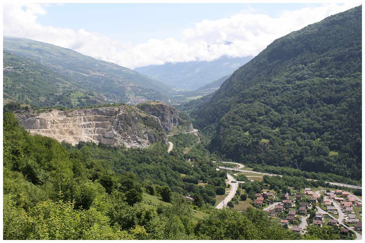 3) Zudem eine kleine Straße am Hang bei Montgirod südwestlich Aime, weil es trotz anderslautender Info der Straßenkarte nicht bis Hautecour durchgeht, denn ein Verbotsschild mit Hinweis auf Waldbrandgefahr ist eindeutig.