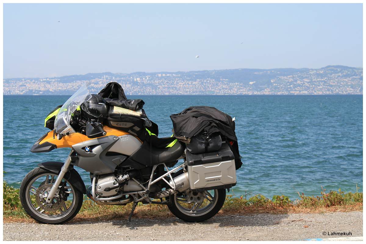 Ich erreiche den Genfer See und prompt reißt die Wolkendecke auf. Die Temperaturen steigen auf kuschelige 25 – 30 Grad Celsius und ich entledige mich meiner Regensachen.