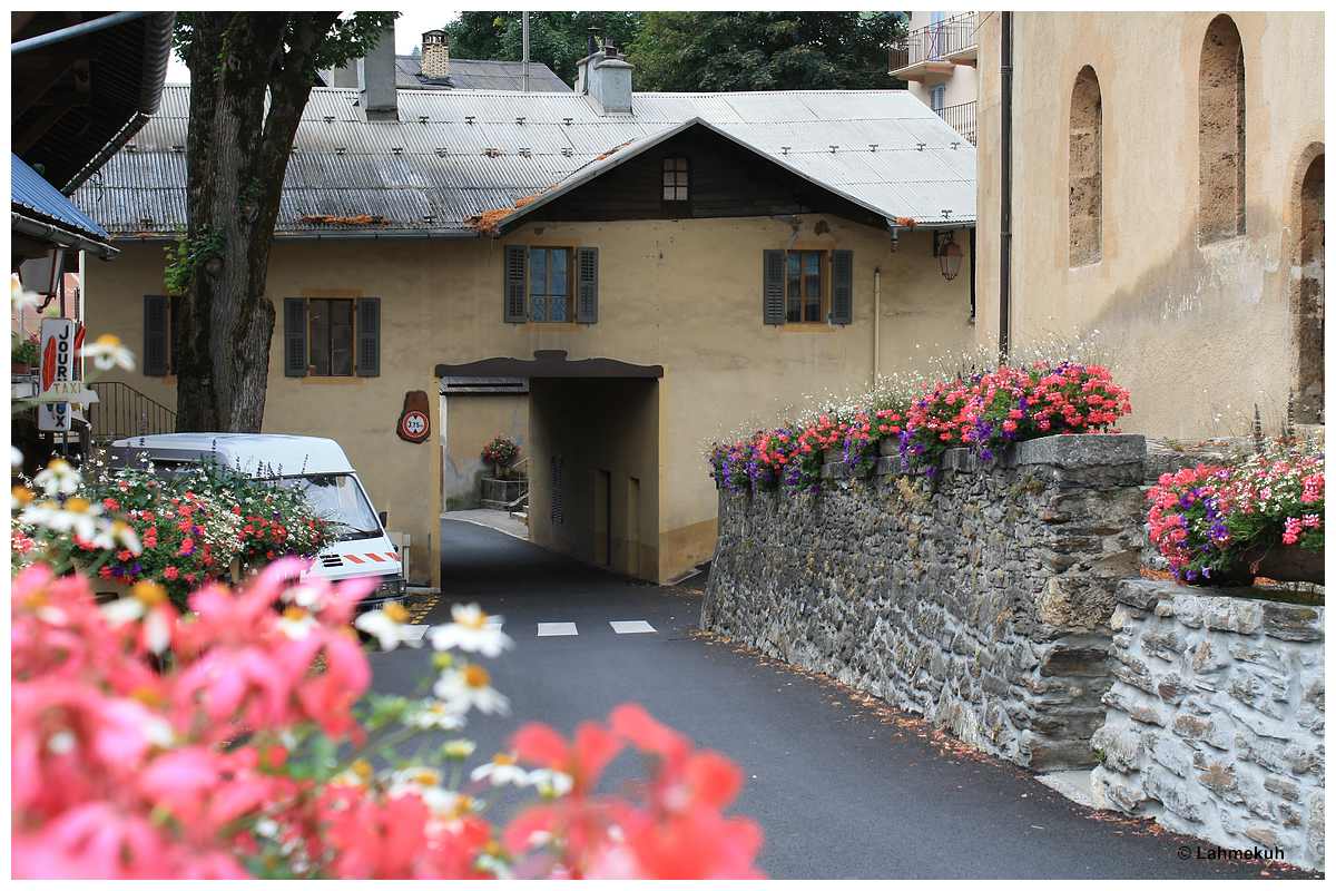 Gegen 16.00 Uhr beginne ich mit der Quartiersuche, werde jedoch erst gegen 18.00 Uhr in Samoens in einem ***Logis-Hotel fündig. Inkl. Frühstück kostet mich die erste Nacht schon mal schlanke 89 €. Das Menue am Abend ist allerdings sehr schmackhaft und so schließe ich den Tag zufrieden mit einem Rundgang durch den Ort ab.