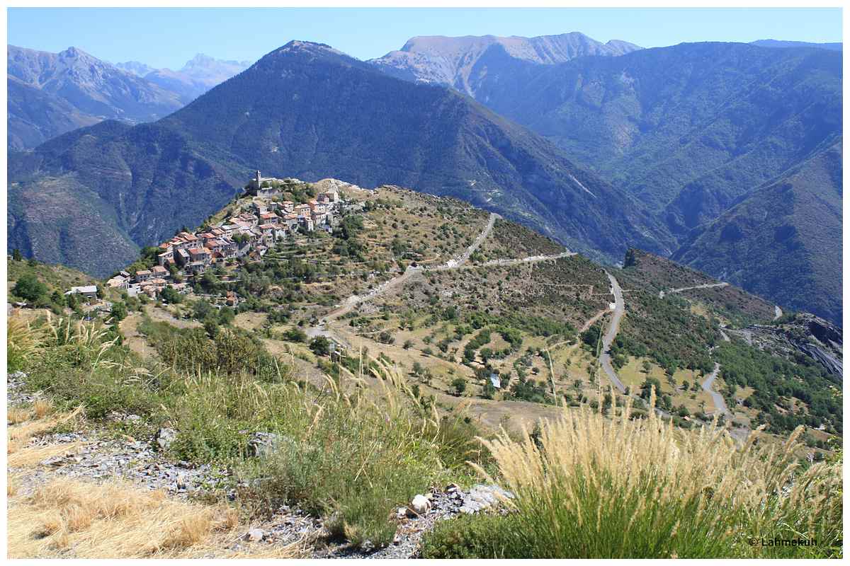 Ich lasse mir viel Zeit, aber irgendwann möchte ich dann weiter, denn heute liegt auch noch Pierlas und Illonse auf der Route. Das Grinsen in meinem Gesicht bleibt mir auch in den nächsten Stunden erhalten. Die Straße nach Pierlas – zigmal in dem Film vom Cheffe angesehen – hält, was die Filme versprechen und auch deren weiterer Verlauf über Illonse nach Valdeblore ist ein fahrerischer Genuss auf einsamer Piste.
