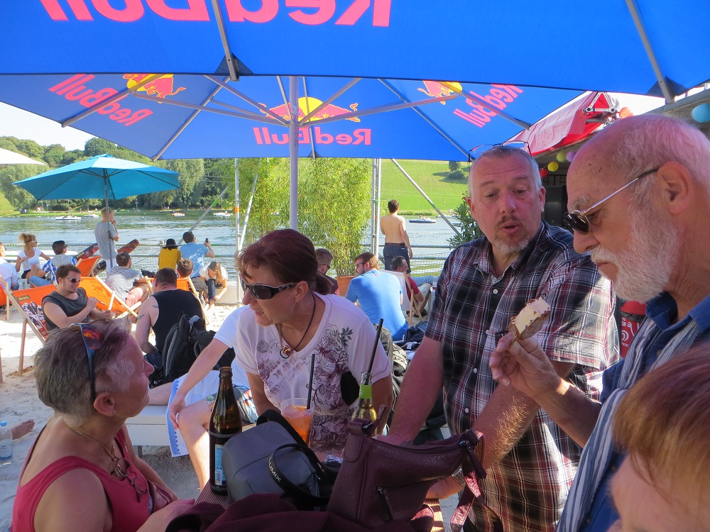 Obwohl die Gigls, seit 9:00 permanent auf den Beinen - allein der Olympiaparkspaziergang war knapp 5km - ziemlich groggy waren, sind wir abends noch gemütlich bei angenehmen Temperaturen in einen nicht überlaufenen Biergarten gegangen um eine Kleinigkeit zu essen.