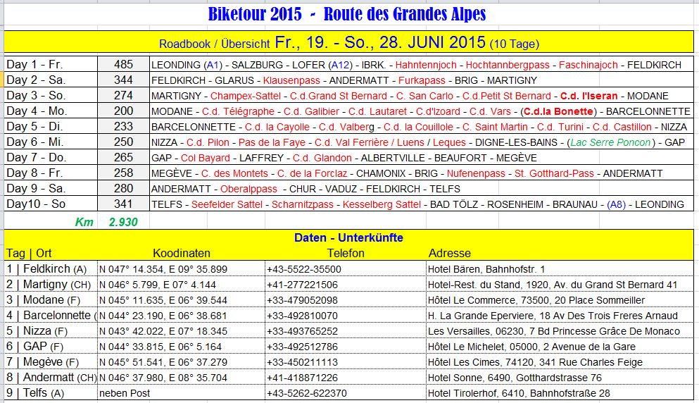 Tourenplanungen 2003-2015 (Übersicht)
