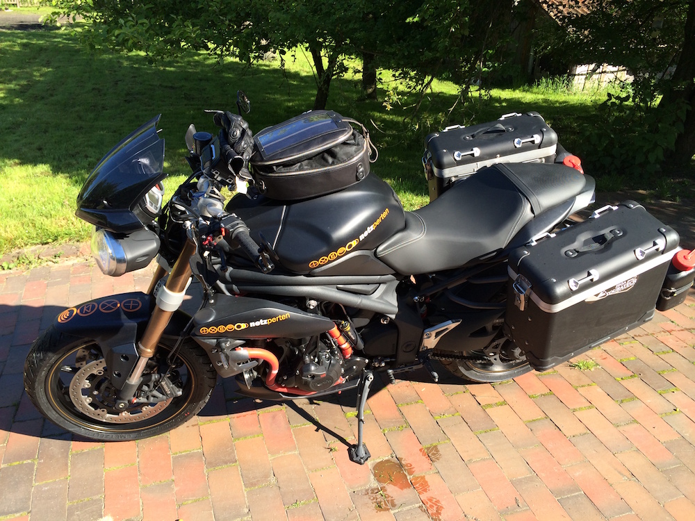Start war der 18.5.2014 um 9:00h - die Fähre startet um 17:00h. In 2014 hatte ich noch keinen Tiger im Stall - aber eine Triumph Speedplorer tut es auch.