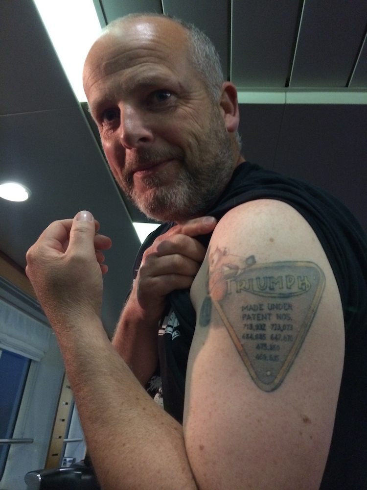 Auf der Fähre haben wir dann einen RICHTIGEN Triumph Fan kennen gelernt - dagegen ist alles was wir machen Kindergeburtstag.