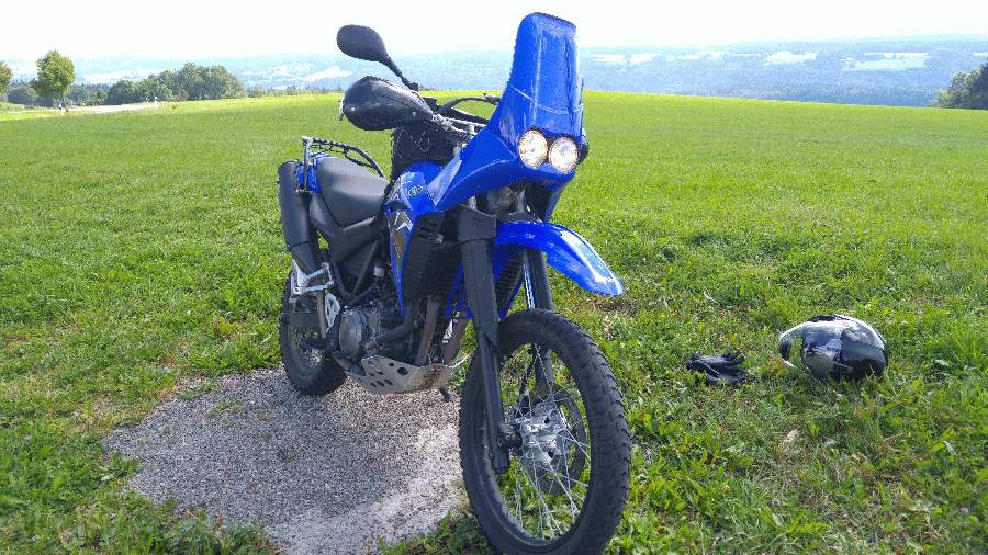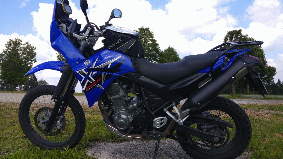 Eine Yamaha XT 660 R, BJ 2008 mit zur Zeit 38.000 km, von denen ich in den letzten 3 Saisons 21.000 gefahren bin. Camouflage-Style? Ich mag meine XT verdammt gerne, doch egal wo wir stehen, oben auf einem Pass oder doch mal vor nem Mopedladen, sie wird niemals von anderen Motorradfahrern wahr genommen. Deswegen Camouflage-Style. Für mich hat das den großen Vorteil, den Schlüssel so gut wie immer stecken lassen zu können und nie nicht die Angst zu haben, dass siemir irgendwo gestohlen wird.