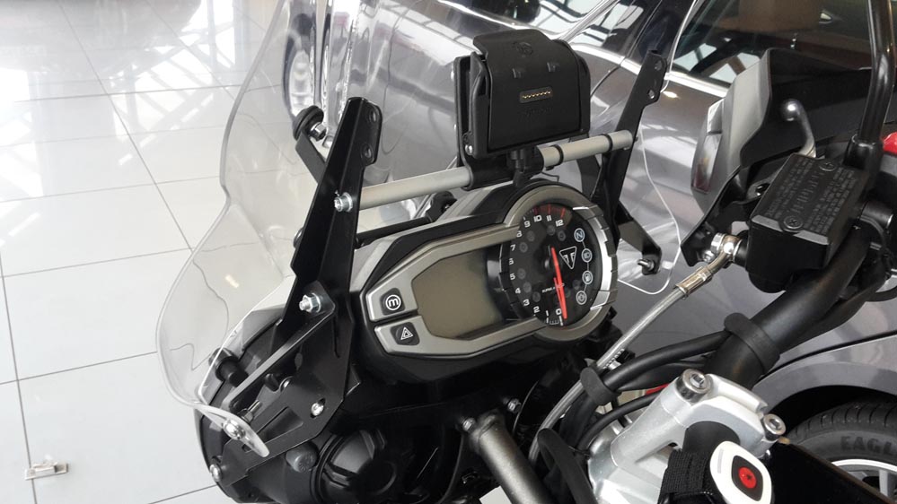 Viele - ich auch - haben zusätzlich aber die Touratech-Navihalterung montiert.