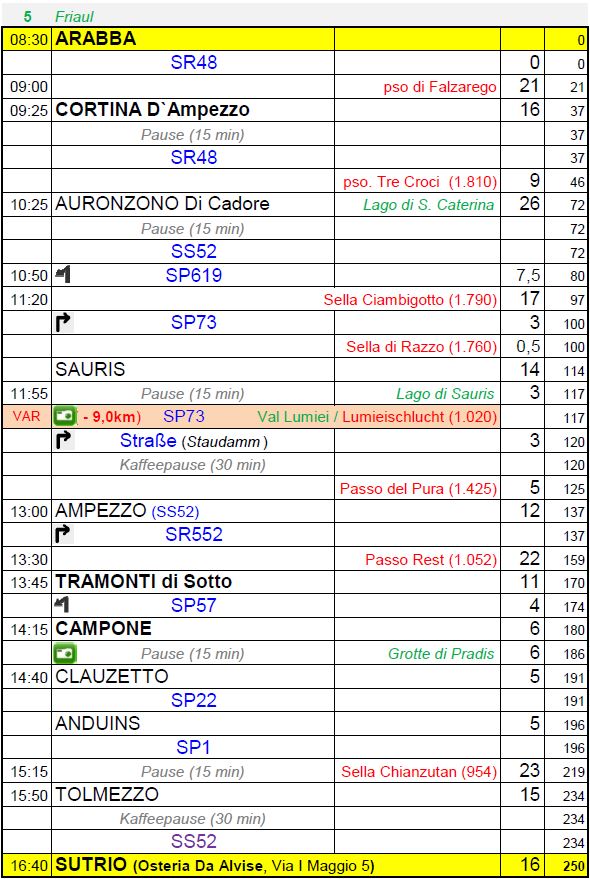 Damit keiner auf falsche Gedanken kommt: Das mit den Zeitangaben dient lediglich als Richtwert und ist für uns während der Tour nicht bindend. Meist wird es sowieso später ;)