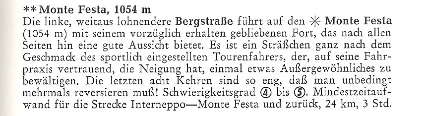 Auf dem Monte Festa war ich zusammen mit Kumpel André letztes Jahr im Mai, vielleicht bekomme ich davon auch noch einen Bericht zusammen. Es ist schön dass die Straße - welche nach dem Erdbeben 1976 lange komplett verschüttet war - von der Gemeinde wieder instand gesetzt wurde. Das auch die Festung selber "gesichert" wurde zeigt den bewussteren Umgang der Region mit den militärischen Hinterlassenschaften, welche noch bis in die 90er Jahre überwiegend komplett sich selbst überlassen waren. Ob das für den "Moto-Alpinismus" gut oder schlecht ist wird sich zeigen.