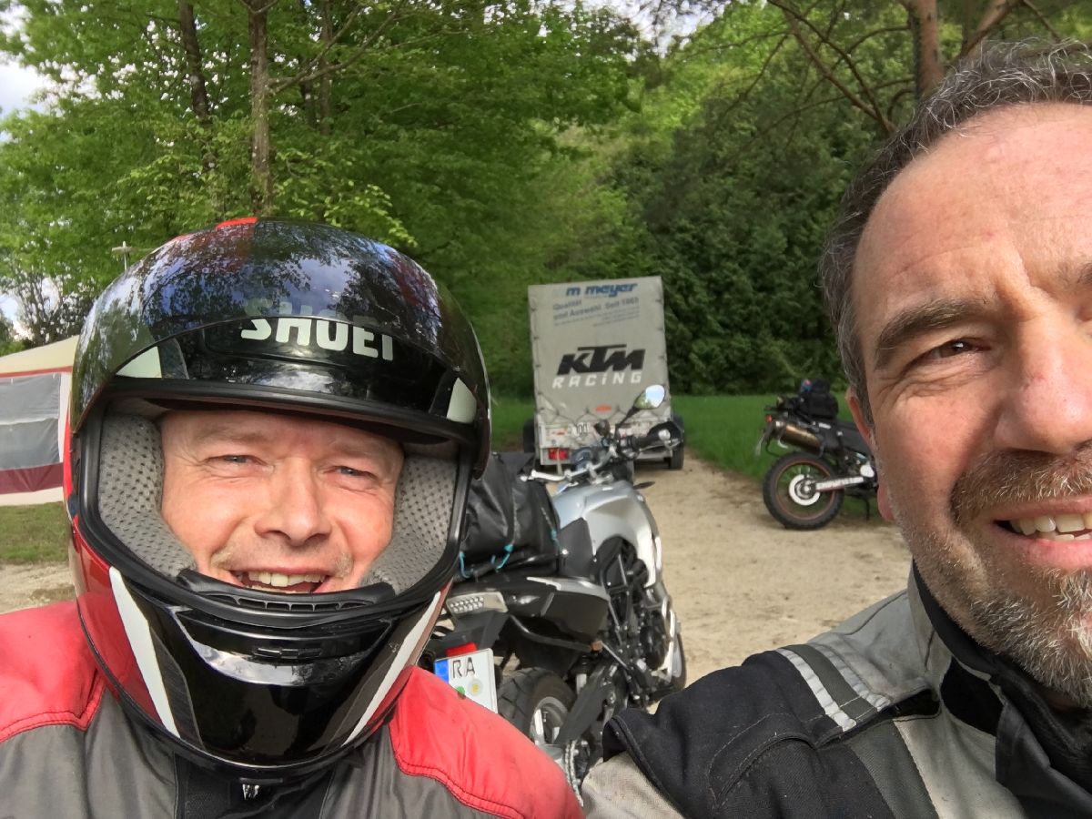 Es war eine Hängepartie, ob wir direkt von zu Hause mit den Motorrädern losfahren (z.B. ins Jura) oder mit dem Anhänger weiter in den Süden. Der Wetterbericht hat es dann entschieden: aufladen und mit dem Auto losfahren.