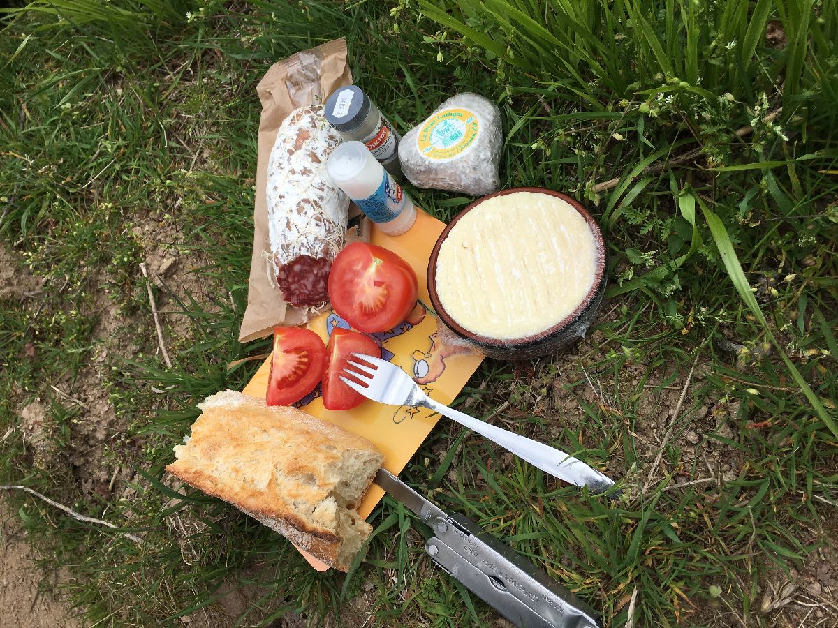 Dann am Ostermontag losgelegt - traditionsgemäss starten wir immer ohne Frühstück, das wir dann unterwegs irgendwo bei einer Pause einlegen. Direkt nach Westen bolzengrade Richtung Thoissey, Frühstück, und ab dann wurde es gut: Beaujolais, ab in die Berge und grade runter nach Süden. Einkauf von Wurst und Käse und irgendwo eine Pause, so läuft das immer. Irgendwann kommen wir ins Département Ardèche und es ist wieder wie immer: unglaublich!