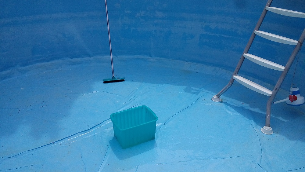 Mit normalem Poolreiniger, war der Algenbesatz am Boden nicht weg zu bringen…