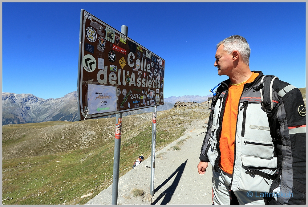 Erst an diesem Tag war die Assietta-Kammstraße wieder für motorisierte Benutzer freigegeben, so dass wir an diesem Tag erneut – für Alen war es Premiere – die Assietta befuhren, diesmal jedoch direkt von Sauze d'Oulx kommend von Süd nach Nord. Hinunter dann über den Colle delle Finestre, um danach den Col del Colombardo zu absolvieren.