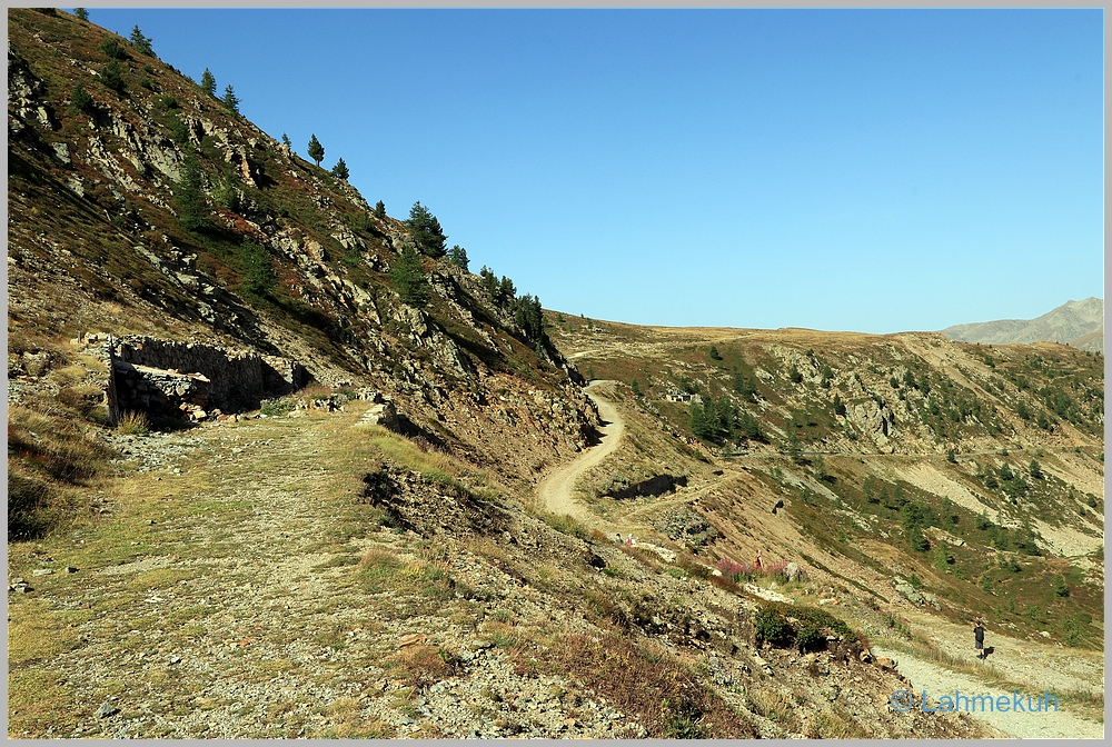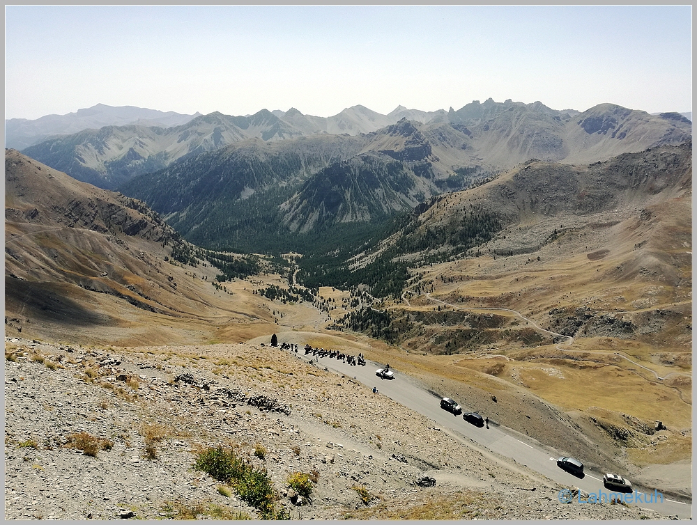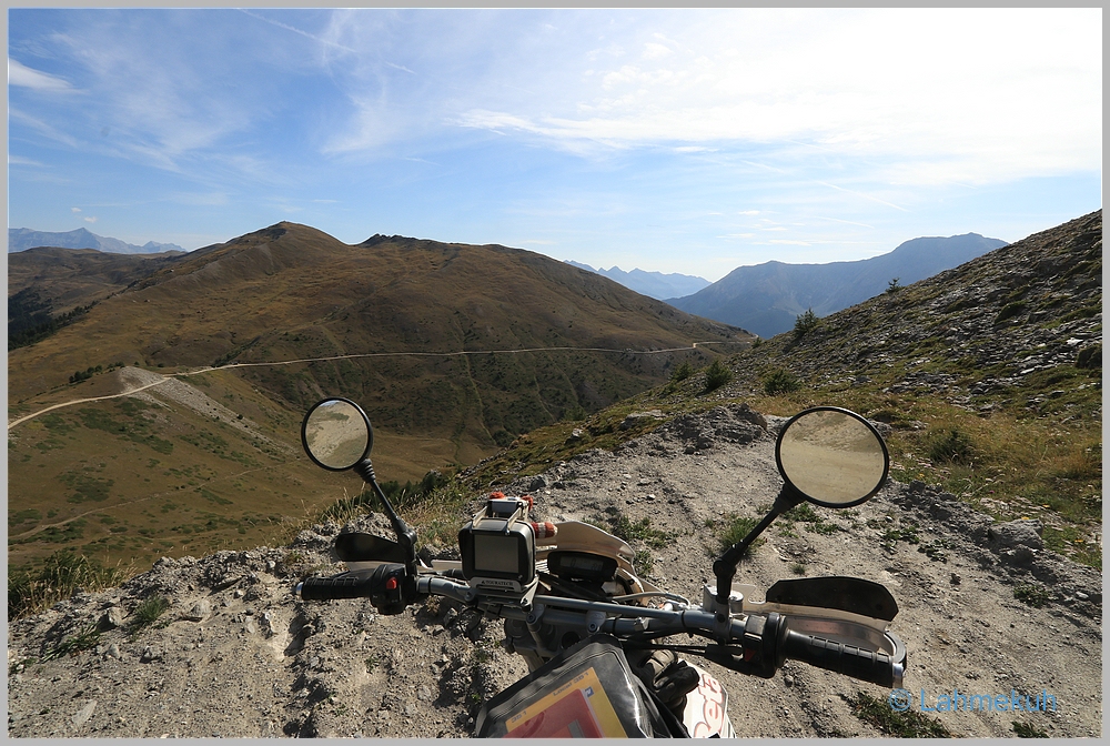 Am Col de la Lombarde Hier am Col de la Moutière geht es westwärts in Richtung Bayasse Alen, der Insektendompteur Von dort gaaaanz unten kamen wir her Nachbarschaftstreffen am Bonette