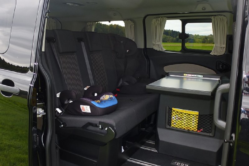 - Innenausbau von Sortimo. Verstellbare 3er Sitzbank die zur Liegefläche umfunktioniert werden kann. Drehbarer Fahrer und Beifahrersitz, verschiebbarer Tisch, drehbarer und verschiebbarer Einzelsitz, alles auf Multiflexschienen ! Vorhänge, stark getönte Scheiben, Ausstellfenster in den Seitentüren.