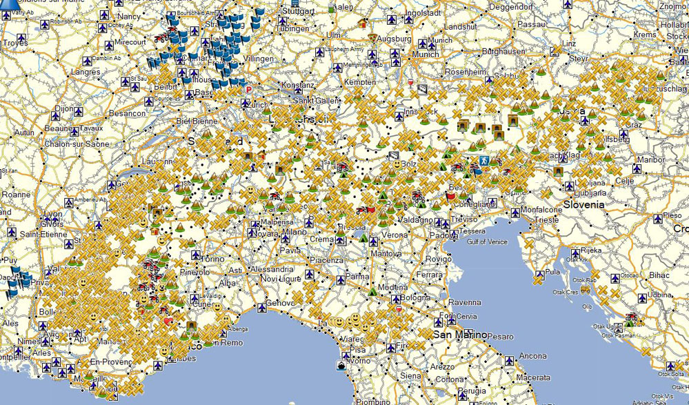 In Europa sieht das ähnlich aus, viele Sehenswürdigkeiten, Pässe, Hotels, Werkstätten und noch Einiges mehr.