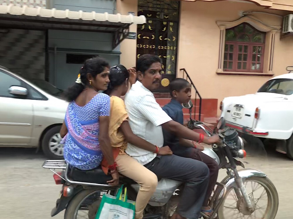 Der Verkehr der Millionenmetropole Chennai (und auch im restlichen Indien) FLIESST im Sinne des Wortes. Flüssigkeit füllt jeden leeren Raum. Und das tun hier alle, insbesondere Motorradfahrer. Begleitet wird dieses Fließen von Hupen. Ständig, dauernd und überall. Es gilt das Recht des Stärkeren.