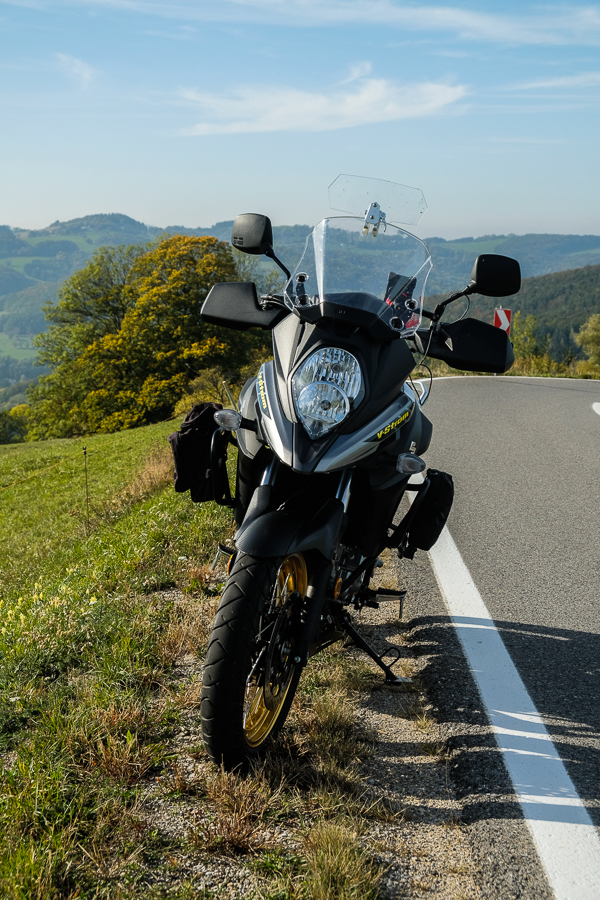 Mit Maya habe ich mittlerweile gute 1500 Kilometer zurück gelegt und ich mußte feststellen, dass man nach einem ganzen Fahrtag viel entspannter von der Suzuki und mit viel mehr Restenergie absteigt, als von der KLE.