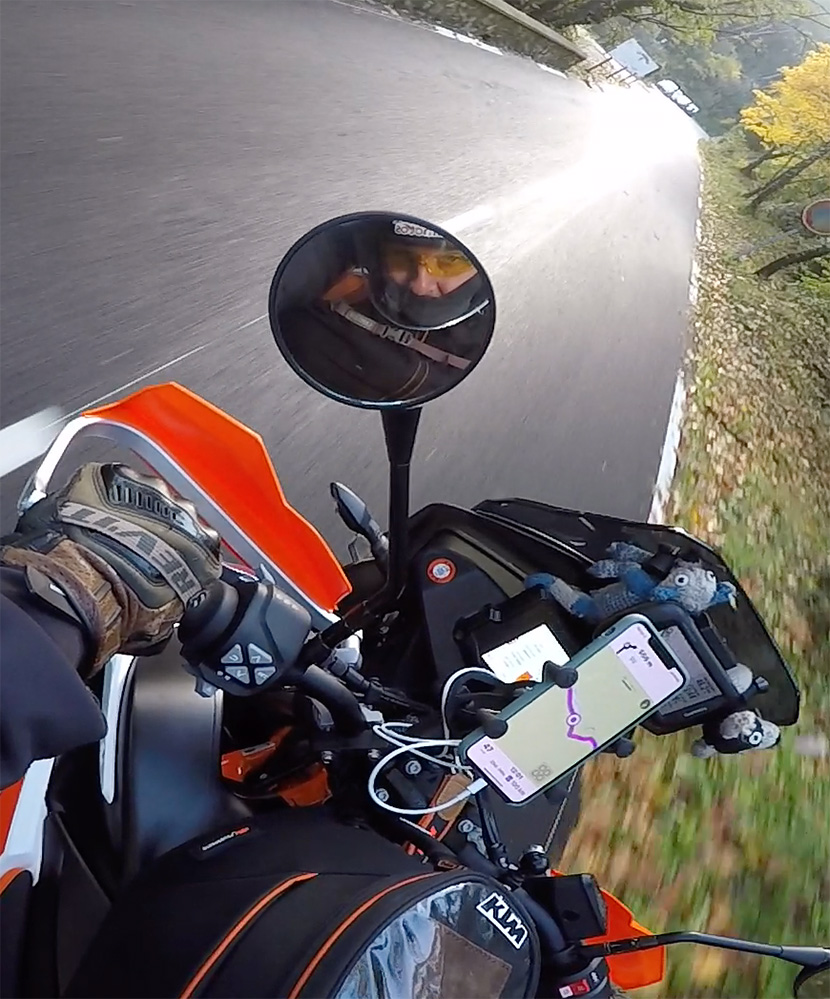 An der Ducati habe ich ein Gopro-Klebepad auf der Lenkerbrücke.