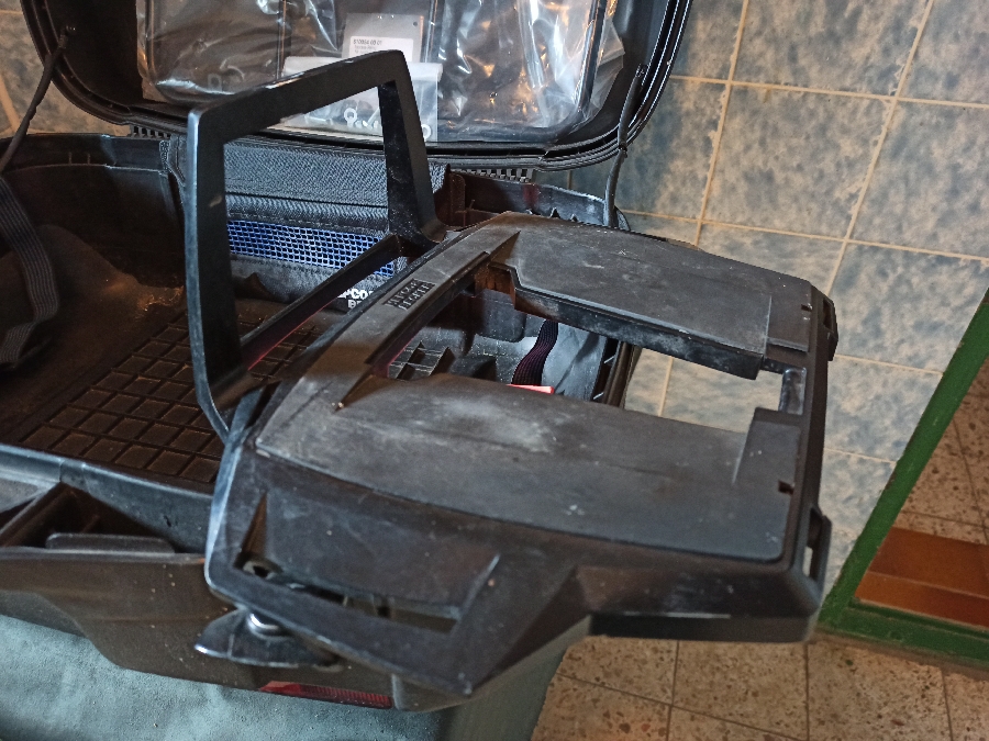 Dabei auch noch eine Rehling für auf den Topcasedeckel für zB Regenzeug.